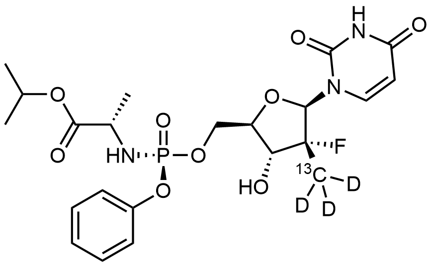 Synonyms: isopropyl ((S)-(((2R,3R,4R,5R)-5-(2,4-dioxo-3,4-dihydropyrimidin-1(2H)-yl)-4-fluoro-3-hydroxy-4-(methyl-13C-d3)tetrahydrofuran-2-yl)methoxy)(phenoxy)phosphoryl)-L-alaninate