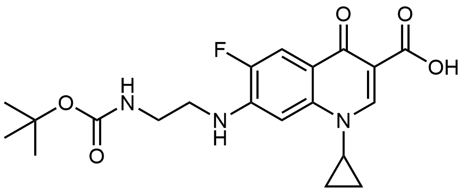 Synonyms: 7-((2-((tert-butoxycarbonyl)amino)ethyl)amino)-1-cyclopropyl-6-fluoro-4-oxo-1,4-dihydroquinoline-3-carboxylic acid