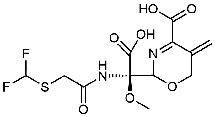 Synonyms: 2-((R)-carboxy(2-((difluoromethyl)thio)acetamido)(methoxy)methyl)-5-methylene-5,6-dihydro-2H-1,3-oxazine-4-carboxylic acid