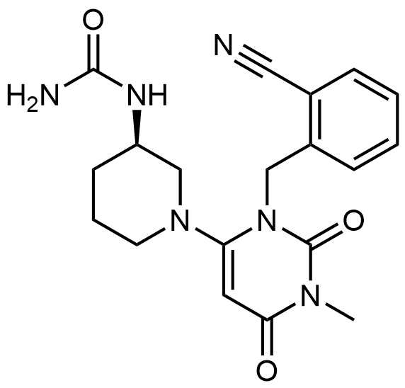 Synonyms: (R)-1-(1-(3-(2-cyanobenzyl)-1-methyl-2,6-dioxo-1,2,3,6-tetrahydropyrimidin-4-yl)piperidin-3-yl)urea
