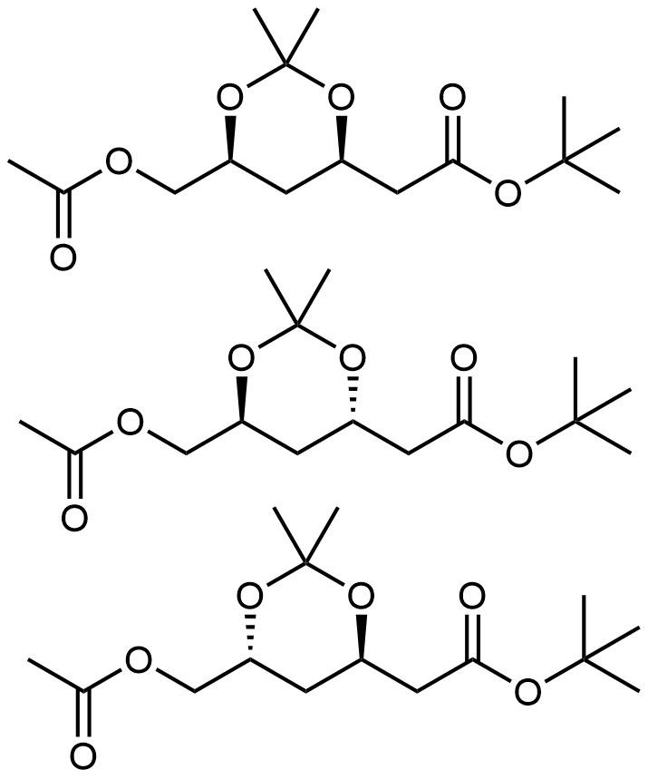 Synonyms: tert-butyl 2-((4R,6S)-6-(acetoxymethyl)-2,2-dimethyl-1,3-dioxan-4-yl)acetate/tert-butyl 2-((4S,6S)-6-(acetoxymethyl)-2,2-dimethyl-1,3-dioxan-4-yl)acetate/tert-butyl 2-((4R,6R)-6-(acetoxymethyl)-2,2-dimethyl-1,3-dioxan-4-yl)acetate