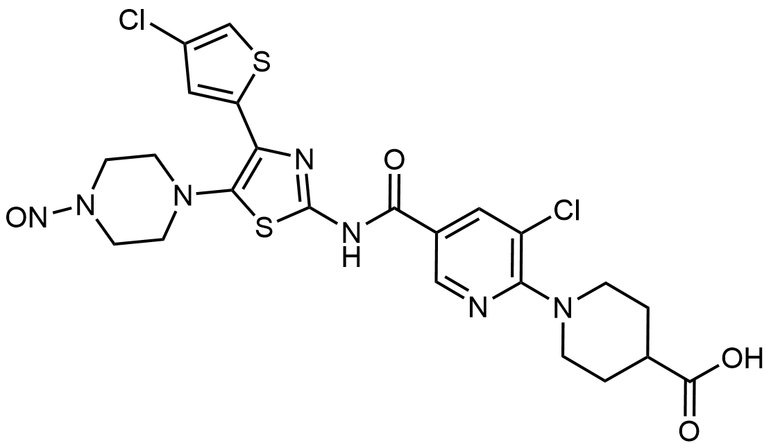 Synonyms: 1-(3-chloro-5-((4-(4-chlorothiophen-2-yl)-5-(4-nitrosopiperazin-1-yl)thiazol-2-yl)carbamoyl)pyridin-2-yl)piperidine-4-carboxylic acid