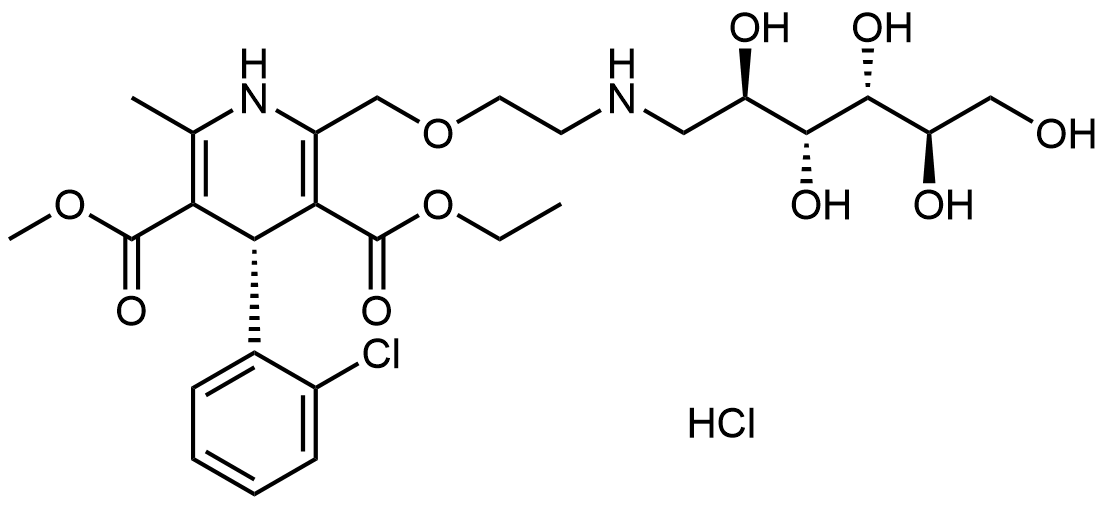 Synonyms: 3-ethyl 5-methyl (R)-4-(2-chlorophenyl)-6-methyl-2-((2-(((2R,3R,4R,5R)-2,3,4,5,6-pentahydroxyhexyl)amino)ethoxy)methyl)-1,4-dihydropyridine-3,5-dicarboxylate hydrochloride