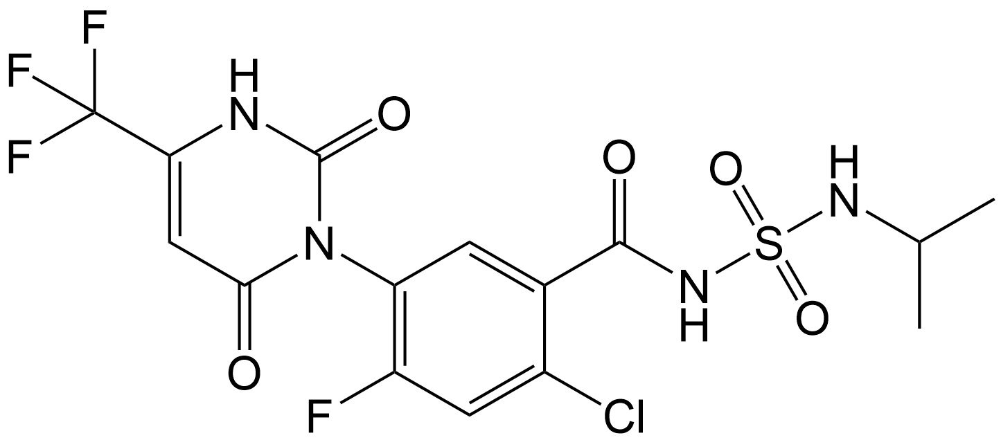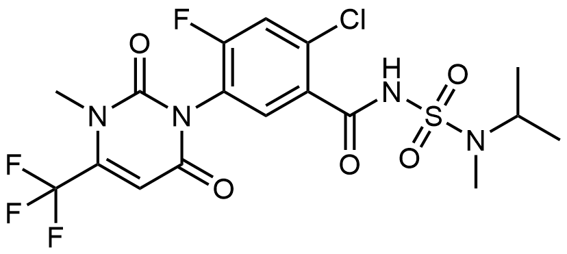 Synonyms: 2-chloro-4-fluoro-N-(N-isopropyl-N-methylsulfamoyl)-5-(3-methyl-2,6-dioxo-4-(trifluoromethyl)-3,6-dihydropyrimidin-1(2H)-yl)benzamide