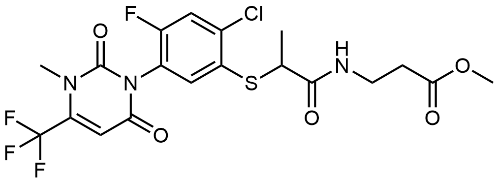 Synonyms: methyl 3-(2-((2-chloro-4-fluoro-5-(3-methyl-2,6-dioxo-4-(trifluoromethyl)-3,6-dihydropyrimidin-1(2H)-yl)phenyl)thio)propanamido)propanoate