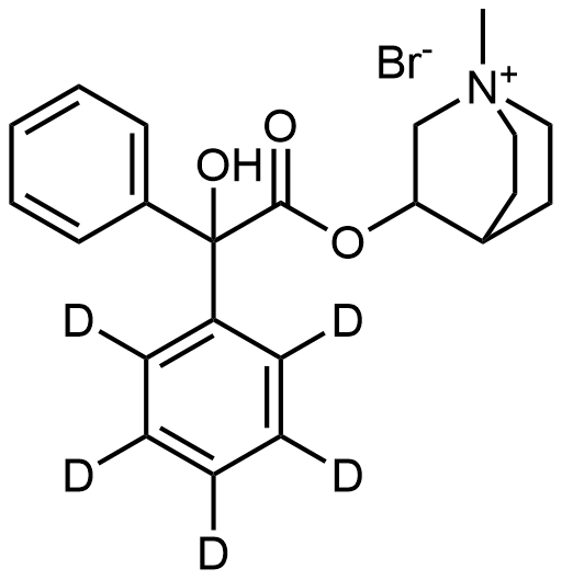 Synonyms: 3-(2-hydroxy-2-phenyl-2-(phenyl-d5)acetoxy)-1-methylquinuclidin-1-ium bromide