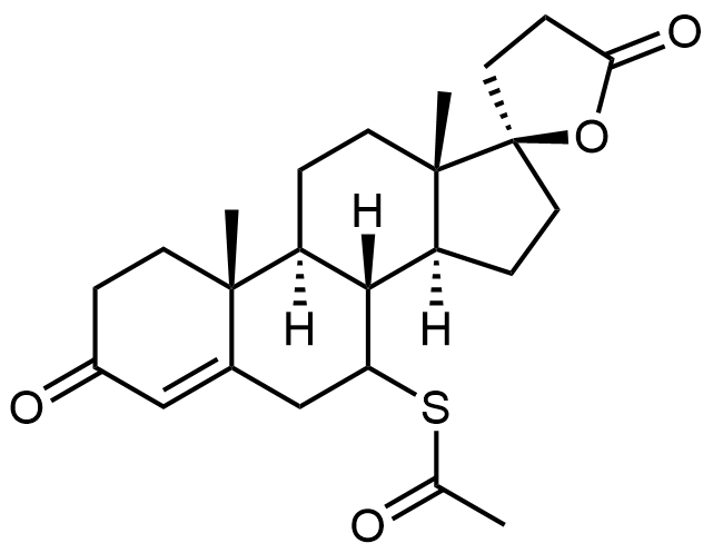 Synonyms: S-((8R,9S,10R,13S,14S,17R)-10,13-dimethyl-3,5'-dioxo-1,2,3,4',5',6,7,8,9,10,11,12,13,14,15,16-hexadecahydro-3'H-spiro[cyclopenta[a]phenanthrene-17,2'-furan]-7-yl) ethanethioate