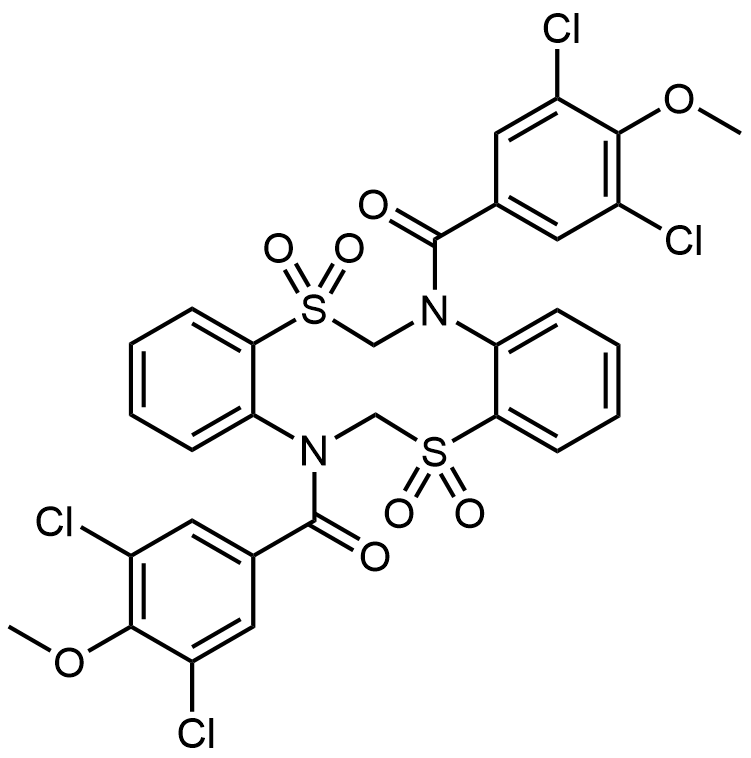 Synonyms: (5,5,12,12-tetraoxidodibenzo[d,i][1,6,3,8]dithiadiazecine-7,14(6H,13H)-diyl)bis((3,5-dichloro-4-methoxyphenyl)methanone)
