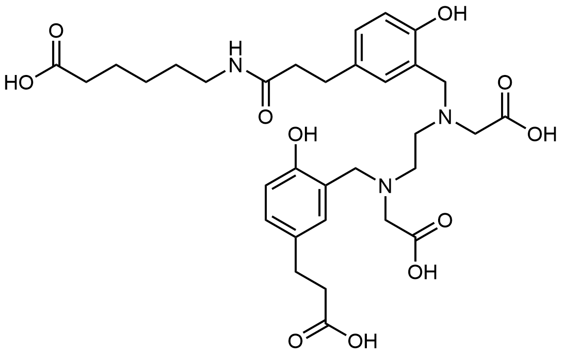 Synonyms: (3R,7S)-22-(3-(((2-((5-(2-carboxyethyl)-2-hydroxybenzyl)(carboxymethyl)amino)ethyl)(carboxymethyl)amino)methyl)-4-hydroxyphenyl)-5,13,20-trioxo-4,6,12,19-tetraazadocosane-1,3,7-tricarboxylic acid