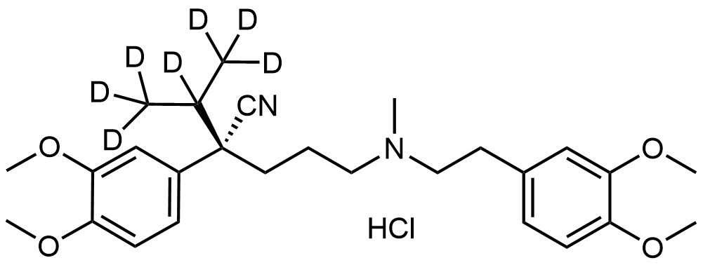 Synonyms: (S)-5-((3,4-dimethoxyphenethyl)(methyl)amino)-2-(3,4-dimethoxyphenyl)-2-(propan-2-yl-d7)pentanenitrile hydrochloride