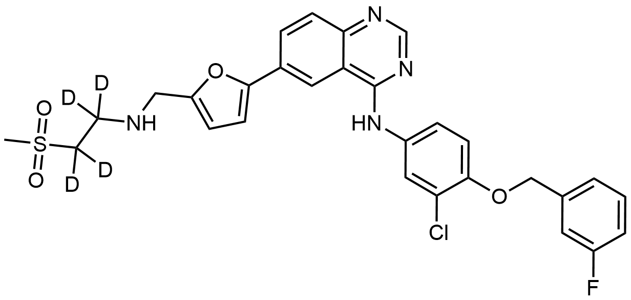 Synonyms: N-(3-chloro-4-((3-fluorobenzyl)oxy)phenyl)-6-(5-(((2-(methylsulfonyl)ethyl-1,1,2,2-d4)amino)methyl)furan-2-yl)quinazolin-4-amine