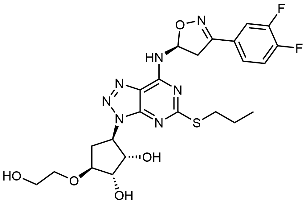 Synonyms: (1S,2S,3R,5S)-3-(7-(((S)-3-(3,4-difluorophenyl)-4,5-dihydroisoxazol-5-yl)amino)-5-(propylthio)-3H-[1,2,3]triazolo[4,5-d]pyrimidin-3-yl)-5-(2-hydroxyethoxy)cyclopentane-1,2-diol