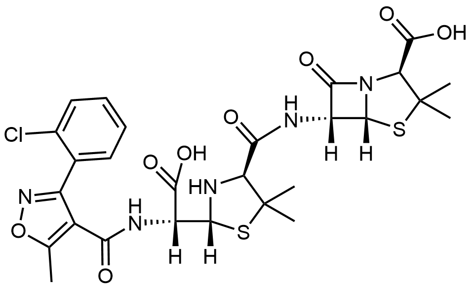 Synonyms: (2S,5R,6R)-6-((2R,4S)-2-((R)-carboxy(3-(2-chlorophenyl)-5-methylisoxazole-4-carboxamido)methyl)-5,5-dimethylthiazolidine-4-carboxamido)-3,3-dimethyl-7-oxo-4-thia-1-azabicyclo[3.2.0]heptane-2-carboxylic acid