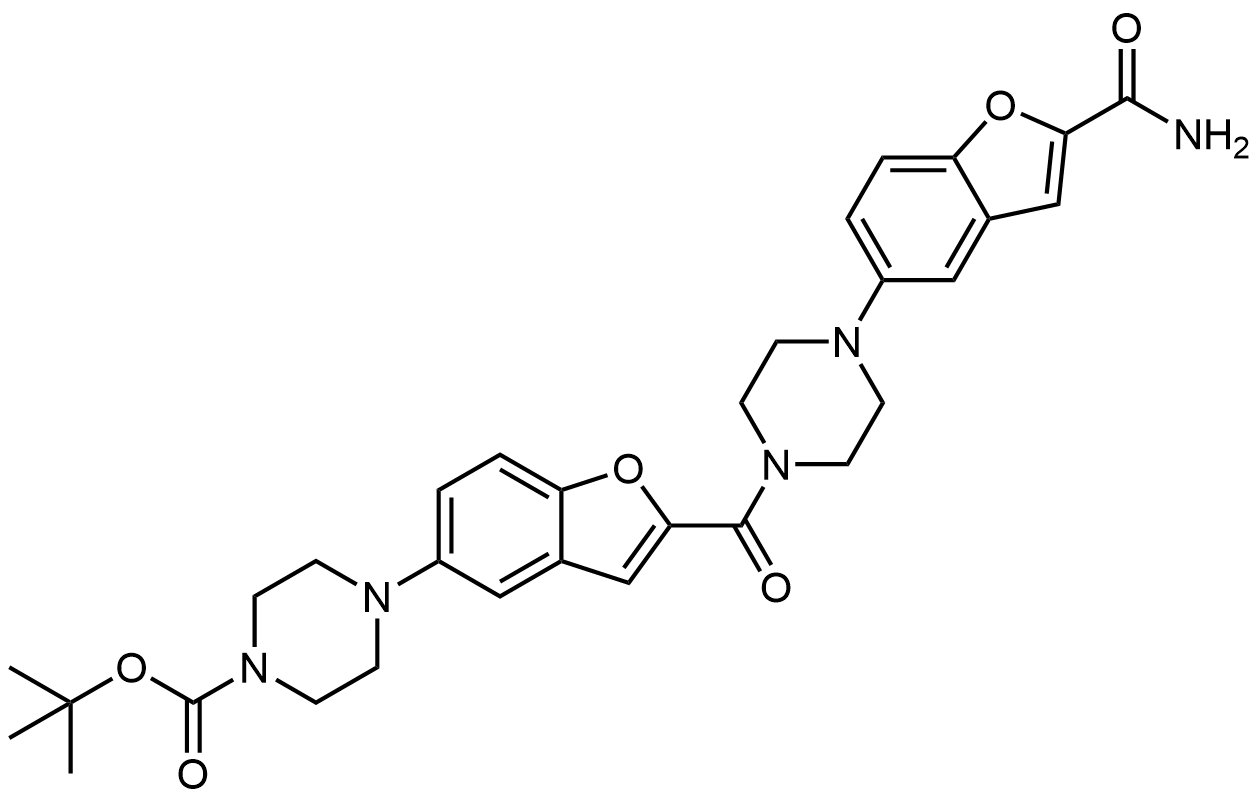 Synonyms: tert-butyl 4-(2-(4-(2-carbamoylbenzofuran-5-yl)piperazine-1-carbonyl)benzofuran-5-yl)piperazine-1-carboxylate