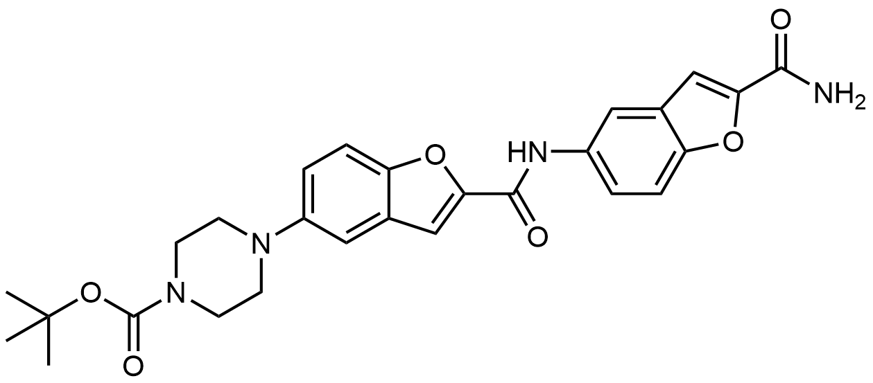 Synonyms: tert-butyl 4-(2-((2-carbamoylbenzofuran-5-yl)carbamoyl)benzofuran-5-yl)piperazine-1-carboxylate