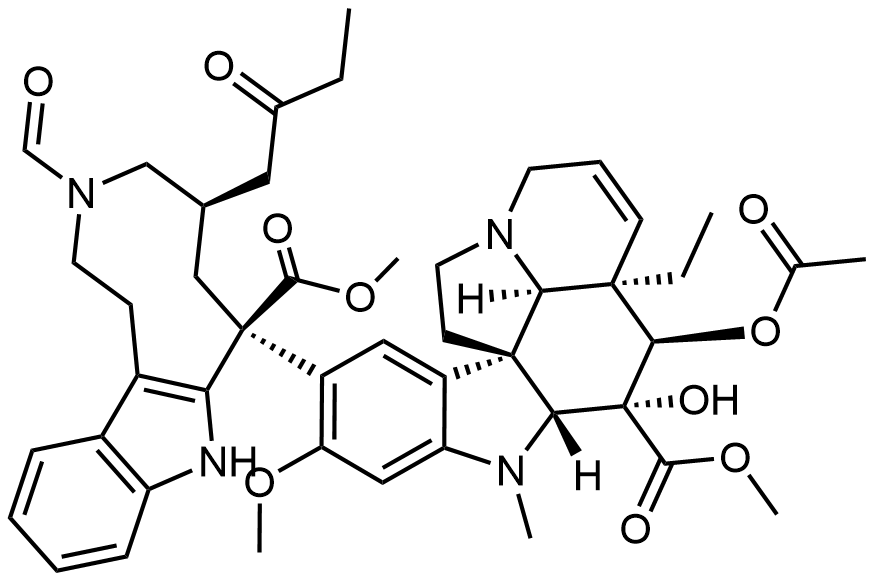 Synonyms: methyl (3aR,3a1R,4R,5R,5aR,10bR)-4-acetoxy-3a-ethyl-9-((5R,7S)-3-formyl-7-(methoxycarbonyl)-5-(2-oxobutyl)-1,2,3,4,5,6,7,8-octahydroazonino[5,4-b]indol-7-yl)-5-hydroxy-8-methoxy-6-methyl-3a,3a1,4,5,5a,6,11,12-octahydro-1H-indolizino[8,1-cd]carbazole-5-carboxylate