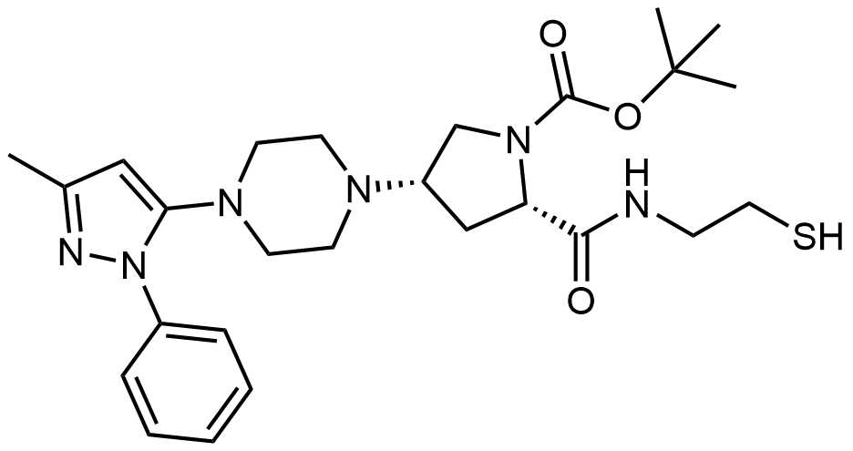 Synonyms: tert-butyl (2S,4S)-2-((2-mercaptoethyl)carbamoyl)-4-(4-(3-methyl-1-phenyl-1H-pyrazol-5-yl)piperazin-1-yl)pyrrolidine-1-carboxylate