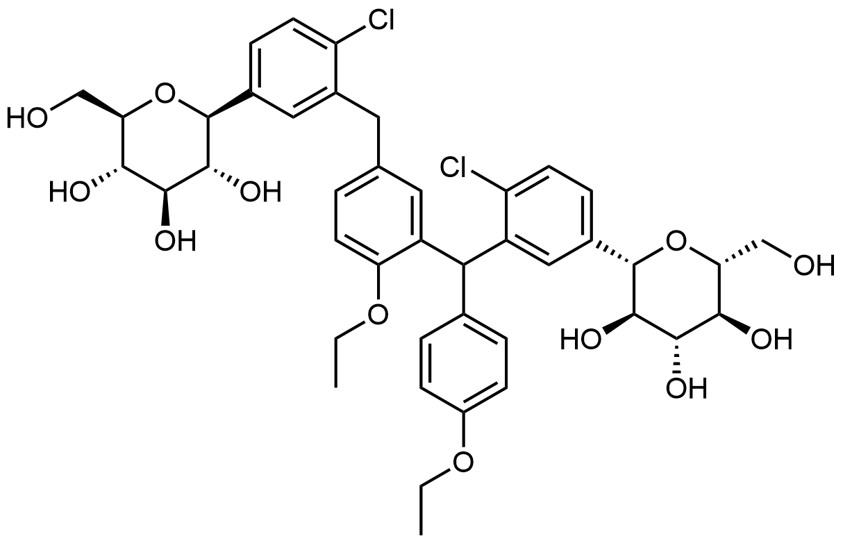 Synonyms: (2S,3R,4R,5S,6R)-2-(4-chloro-3-((5-(2-chloro-5-((2S,3R,4R,5S,6R)-3,4,5-trihydroxy-6-(hydroxymethyl)tetrahydro-2H-pyran-2-yl)benzyl)-2-ethoxyphenyl)(4-ethoxyphenyl)methyl)phenyl)-6-(hydroxymethyl)tetrahydro-2H-pyran-3,4,5-triol