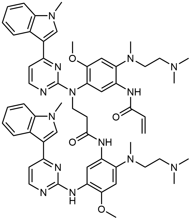 Synonyms: N-(2-((2-(dimethylamino)ethyl)(methyl)amino)-5-((3-((2-((2-(dimethylamino)ethyl)(methyl)amino)-4-methoxy-5-((4-(1-methyl-1H-indol-3-yl)pyrimidin-2-yl)amino)phenyl)amino)-3-oxopropyl)(4-(1-methyl-1H-indol-3-yl)pyrimidin-2-yl)amino)-4-methoxyphenyl)acrylamide