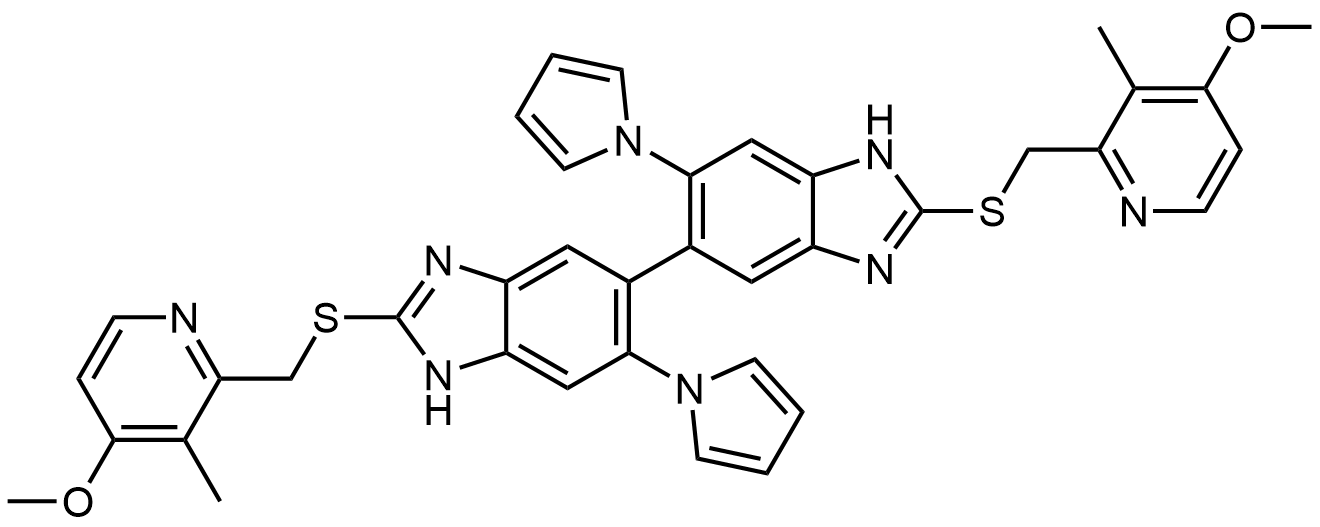 Synonyms: 2,2'-bis(((4-methoxy-3-methylpyridin-2-yl)methyl)thio)-6,6'-di(1H-pyrrol-1-yl)-1H,1'H-5,5'-bibenzo[d]imidazole