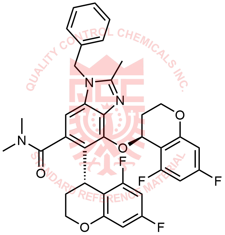 Synonyms: 1-benzyl-5-((R)-5,7-difluorochroman-4-yl)-4-(((S)-5,7-difluorochroman-4-yl)oxy)-N,N,2-trimethyl-1H-benzo[d]imidazole-6-carboxamide