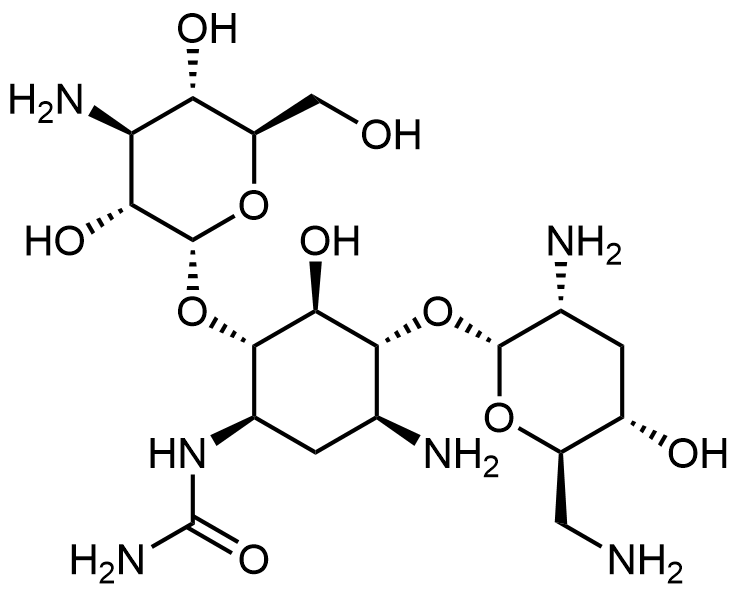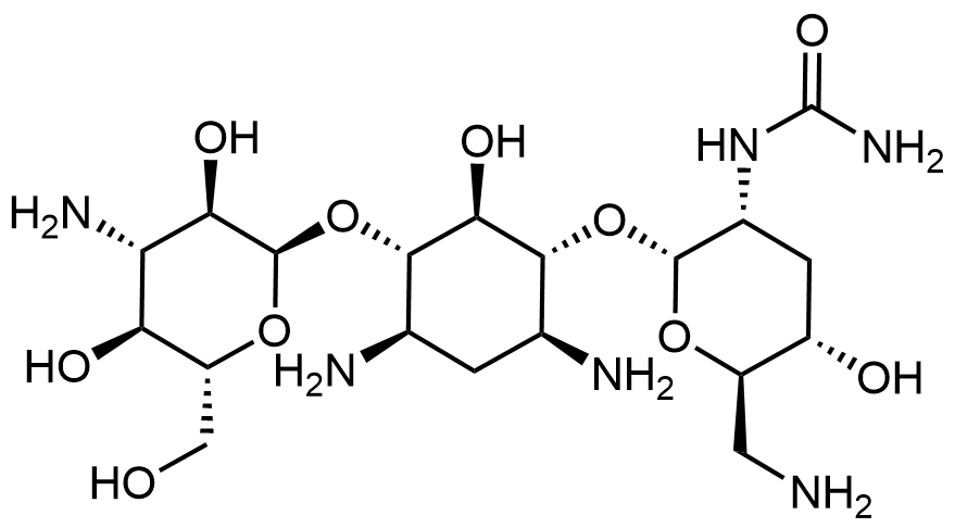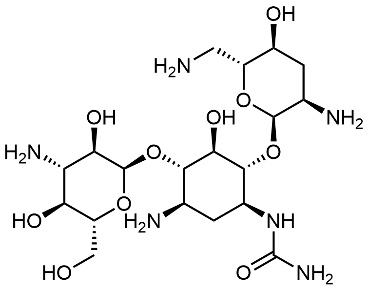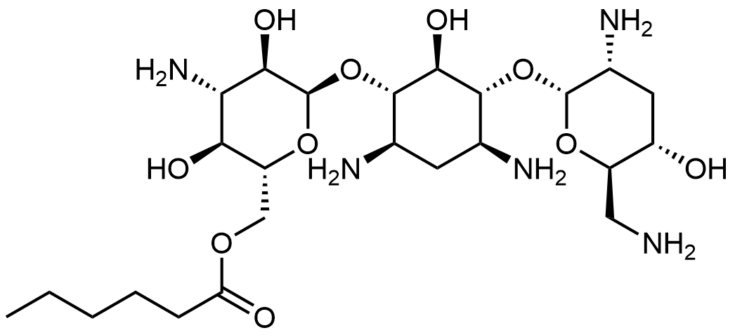 Synonyms: ((2R,3S,4S,5R,6S)-4-amino-6-(((1S,2S,3R,4S,6R)-4,6-diamino-3-(((2R,3R,5S,6R)-3-amino-6-(aminomethyl)-5-hydroxytetrahydro-2H-pyran-2-yl)oxy)-2-hydroxycyclohexyl)oxy)-3,5-dihydroxytetrahydro-2H-pyran-2-yl)methyl hexanoate