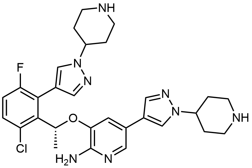 Synonyms: (R)-3-(1-(6-chloro-3-fluoro-2-(1-(piperidin-4-yl)-1H-pyrazol-4-yl)phenyl)ethoxy)-5-(1-(piperidin-4-yl)-1H-pyrazol-4-yl)pyridin-2-amine