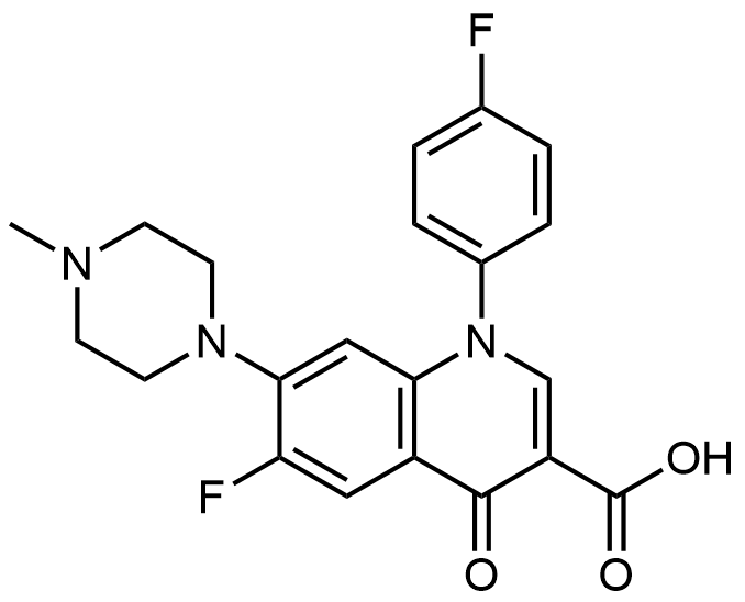 Synonyms: 6-Fluoro-1-(4-fluorophenyl)-1,4-dihydro-7-(4-methylpiperazino)-4-oxo-3-quinolinecarboxylic acid hydrochloride