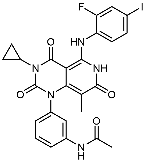 Synonyms: N-(3-(3-cyclopropyl-5-((2-fluoro-4-iodophenyl)amino)-8-methyl-2,4,7-trioxo-3,4,6,7-tetrahydropyrido[4,3-d]pyrimidin-1(2H)-yl)phenyl)acetamide