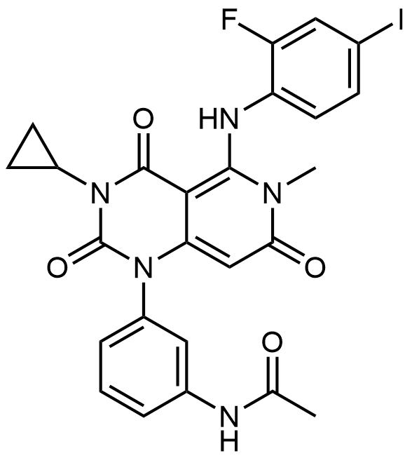 Synonyms: N-(3-(3-cyclopropyl-5-((2-fluoro-4-iodophenyl)amino)-6-methyl-2,4,7-trioxo-3,4,6,7-tetrahydropyrido[4,3-d]pyrimidin-1(2H)-yl)phenyl)acetamide