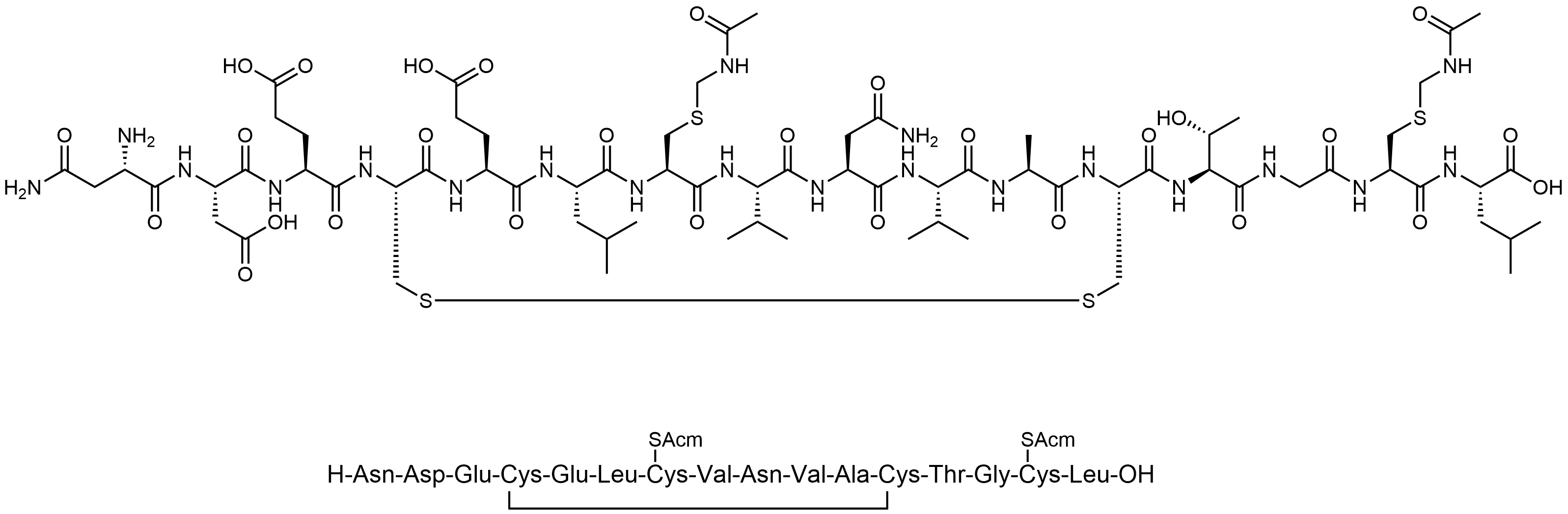 Synonyms: (3S,9R,12S)-9-(((acetamidomethyl)thio)methyl)-1-((4R,7S,10S,13S,16S,19R,22S,25S,28R)-19-(((acetamidomethyl)thio)methyl)-13-(2-amino-2-oxoethyl)-28-((S)-4-carboxy-2-((S)-3-carboxy-2-((S)-2,4-diamino-4-oxobutanamido)propanamido)butanamido)-25-(2-carboxyethyl)-22-isobutyl-10,16-diisopropyl-7-methyl-6,9,12,15,18,21,24,27-octaoxo-1,2-dithia-5,8,11,14,17,20,23,26-octaazacyclononacosan-4-yl)-3-((R)-1-hydroxyethyl)-12-isobutyl-1,4,7,10-tetraoxo-2,5,8,11-tetraazatridecan-13-oic acid