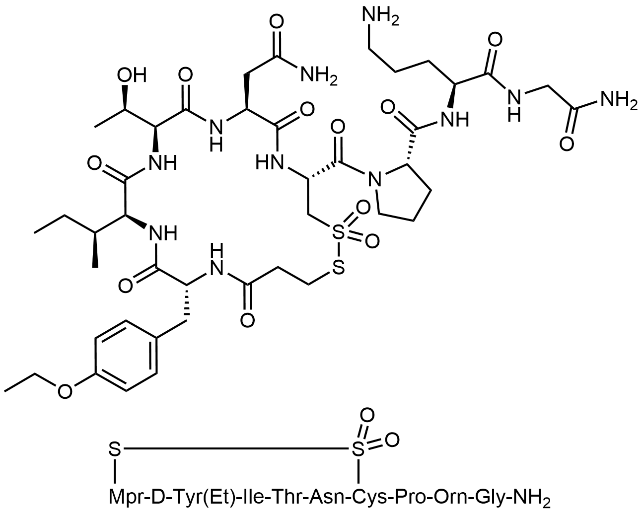 Synonyms: (S)-N-((S)-5-amino-1-((2-amino-2-oxoethyl)amino)-1-oxopentan-2-yl)-1-((4R,7S,10S,13S,16R)-7-(2-amino-2-oxoethyl)-13-((S)-sec-butyl)-16-(4-ethoxybenzyl)-10-((R)-1-hydroxyethyl)-2,2-dioxido-6,9,12,15,18-pentaoxo-1,2-dithia-5,8,11,14,17-pentaazacycloicosane-4-carbonyl)pyrrolidine-2-carboxamide