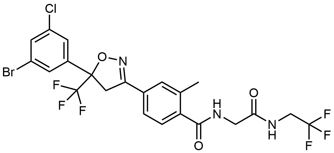 Synonyms: 4-(5-(3-bromo-5-chlorophenyl)-5-(trifluoromethyl)-4,5-dihydroisoxazol-3-yl)-2-methyl-N-(2-oxo-2-((2,2,2-trifluoroethyl)amino)ethyl)benzamide