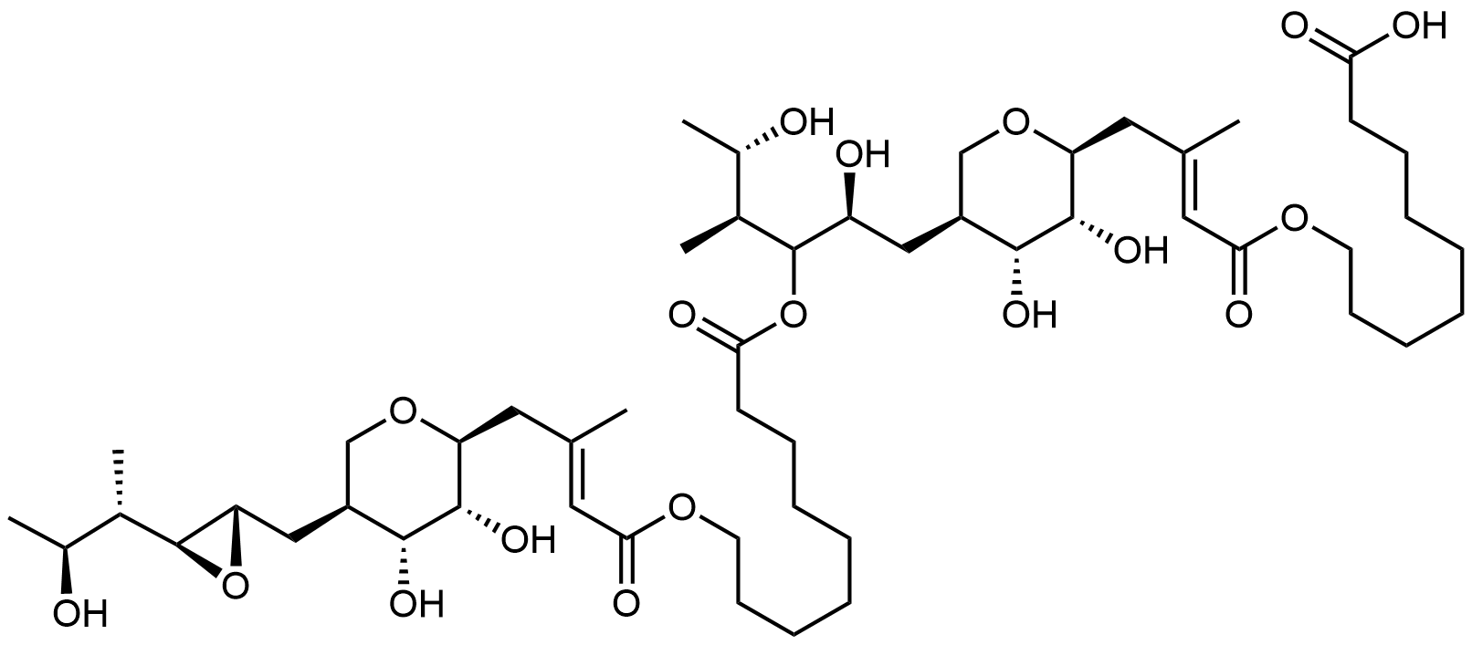 Synonyms: 9-(((E)-4-((2S,3R,4R,5S)-5-((2S,4S,5S)-3-((9-(((E)-4-((2S,3R,4R,5S)-3,4-dihydroxy-5-(((2S,3S)-3-((2S,3S)-3-hydroxybutan-2-yl)oxiran-2-yl)methyl)tetrahydro-2H-pyran-2-yl)-3-methylbut-2-enoyl)oxy)nonanoyl)oxy)-2,5-dihydroxy-4-methylhexyl)-3,4-dihydroxytetrahydro-2H-pyran-2-yl)-3-methylbut-2-enoyl)oxy)nonanoic acid