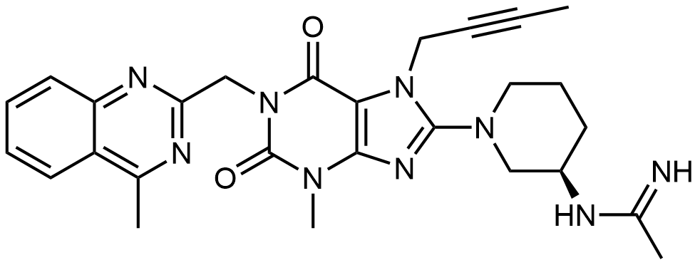 Synonyms: (R)-N-(1-(7-(but-2-yn-1-yl)-3-methyl-1-((4-methylquinazolin-2-yl)methyl)-2,6-dioxo-2,3,6,7-tetrahydro-1H-purin-8-yl)piperidin-3-yl)acetimidamide