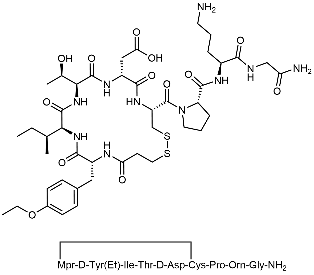 Synonyms: 2-((4R,7R,10S,13S,16R)-4-((S)-2-(((S)-5-amino-1-((2-amino-2-oxoethyl)amino)-1-oxopentan-2-yl)carbamoyl)pyrrolidine-1-carbonyl)-13-((S)-sec-butyl)-16-(4-ethoxybenzyl)-10-((R)-1-hydroxyethyl)-6,9,12,15,18-pentaoxo-1,2-dithia-5,8,11,14,17-pentaazacycloicosan-7-yl)acetic acid