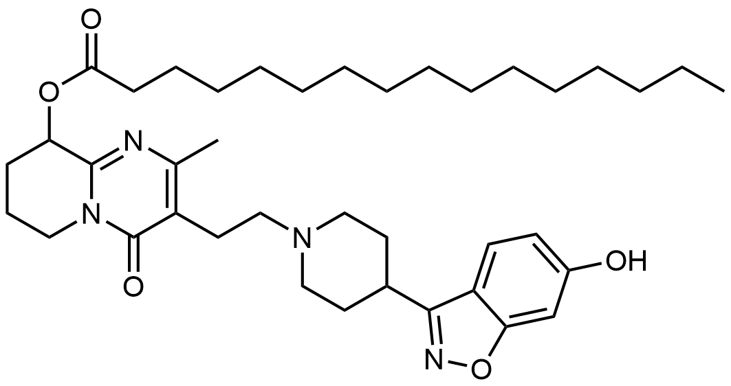 Synonyms: 3-(2-(4-(6-hydroxybenzo[d]isoxazol-3-yl)piperidin-1-yl)ethyl)-2-methyl-4-oxo-6,7,8,9-tetrahydro-4H-pyrido[1,2-a]pyrimidin-9-yl palmitate