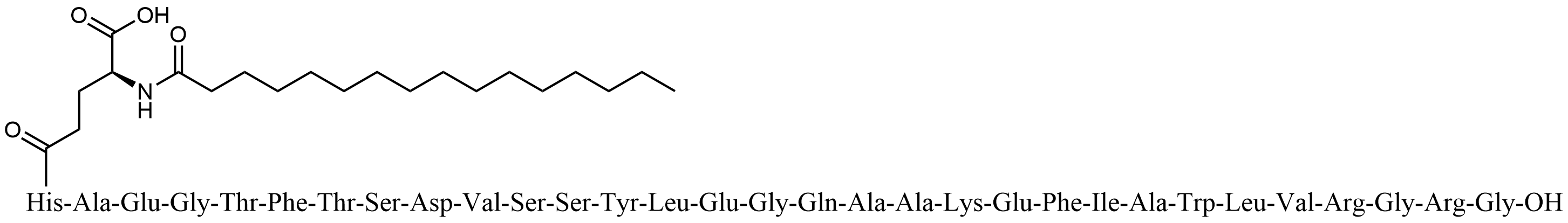 Synonyms: (Ν-α-Pal-L-γ-Glu)-His-Ala-Glu-Gly-Thr-Phe-Thr-Ser-Asp-Val-Ser-Ser-Tyr-Leu-Glu-Gly-Gln-Ala-Ala-Lys-Glu-Phe-Ile-Ala-Trp-Leu-Val-Arg-Gly-Arg-Gly-OH