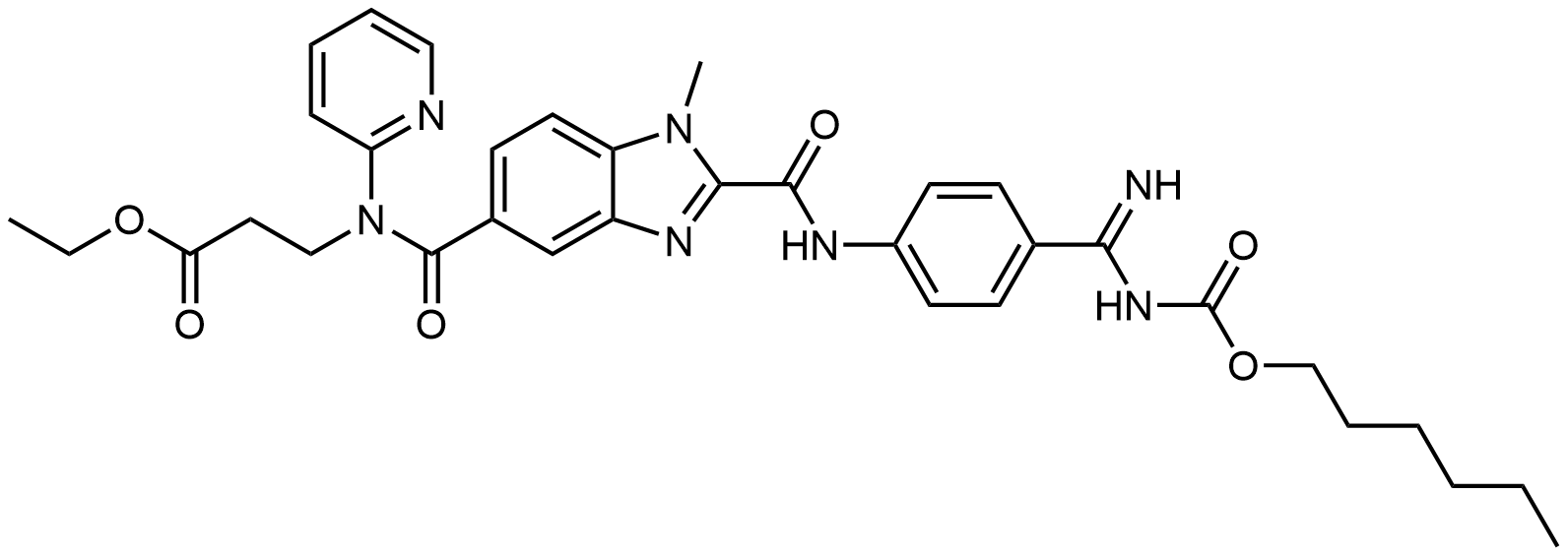 Synonyms: ethyl 3-(2-((4-(N-((hexyloxy)carbonyl)carbamimidoyl)phenyl)carbamoyl)-1-methyl-N-(pyridin-2-yl)-1H-benzo[d]imidazole-5-carboxamido)propanoate