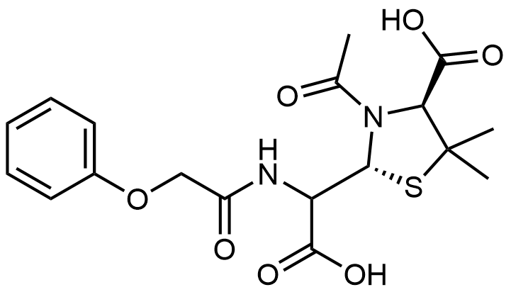 Synonyms: (2R,4S)-3-acetyl-2-(carboxy(2-phenoxyacetamido)methyl)-5,5-dimethylthiazolidine-4-carboxylic acid