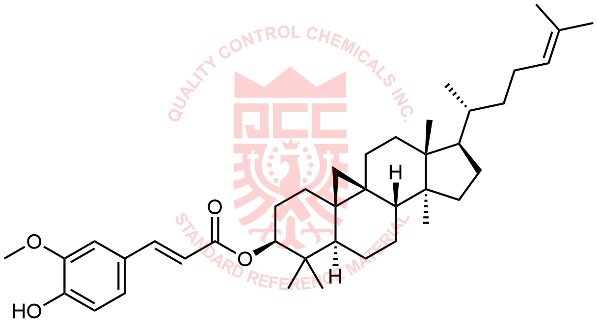 Synonyms: (2aR,3R,5aS,5bS,7aR,9S,11aR,12aS)-2a,5a,8,8-tetramethyl-3-((R)-6-methylhept-5-en-2-yl)tetradecahydro-1H,12H-cyclopenta[a]cyclopropa[e]phenanthren-9-yl (E)-3-(4-hydroxy-3-methoxyphenyl)acrylate
