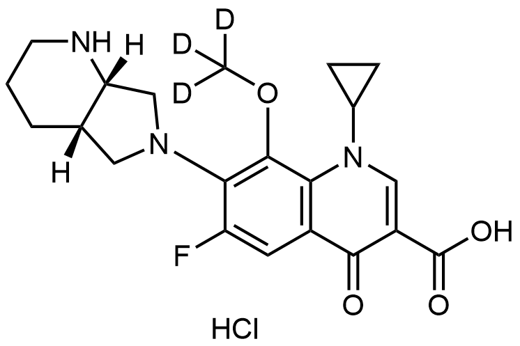Synonyms: 1-cyclopropyl-6-fluoro-8-(methoxy-d3)-7-((4aS,7aS)-octahydro-6H-pyrrolo[3,4-b]pyridin-6-yl)-4-oxo-1,4-dihydroquinoline-3-carboxylic acid hydrochloride