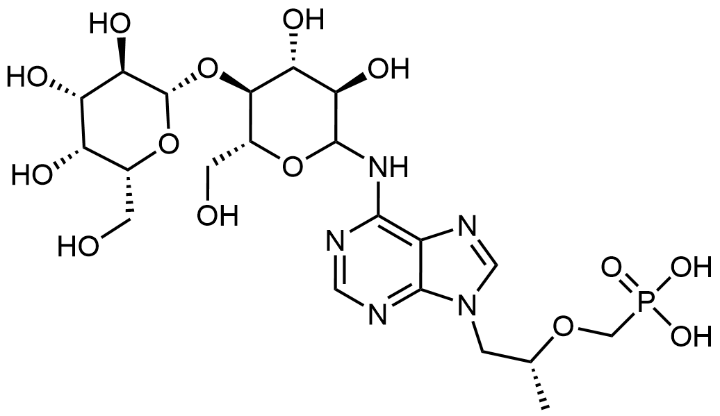Synonyms: ((((2R)-1-(6-(((3R,4R,5S,6R)-3,4-dihydroxy-6-(hydroxymethyl)-5-(((2S,3R,4S,5R,6R)-3,4,5-trihydroxy-6-(hydroxymethyl)tetrahydro-2H-pyran-2-yl)oxy)tetrahydro-2H-pyran-2-yl)amino)-9H-purin-9-yl)propan-2-yl)oxy)methyl)phosphonic acid