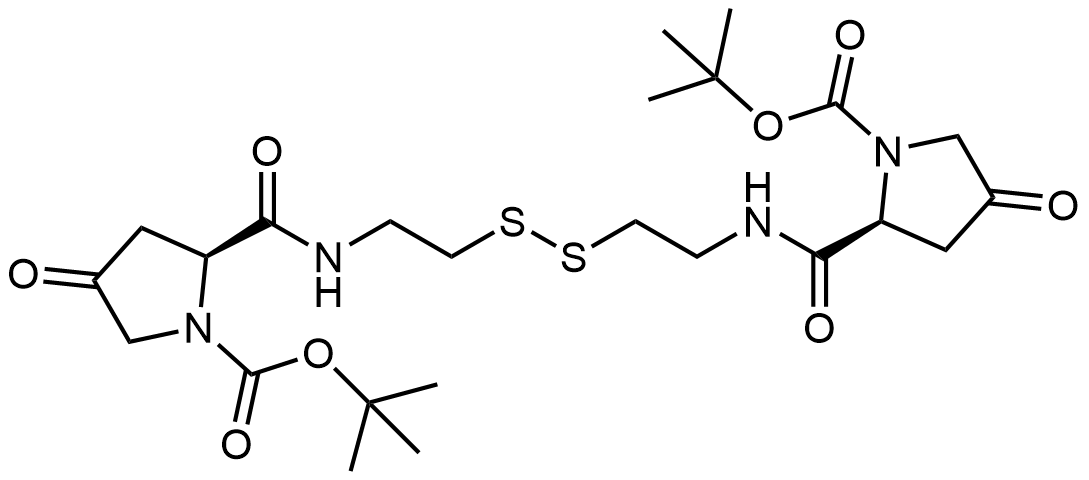 Synonyms: di-tert-butyl 5,5'-(((disulfanediylbis(ethane-2,1-diyl))bis(azanediyl))bis(carbonyl))(5S,5'S)-bis(3-oxopyrrolidine-1-carboxylate)