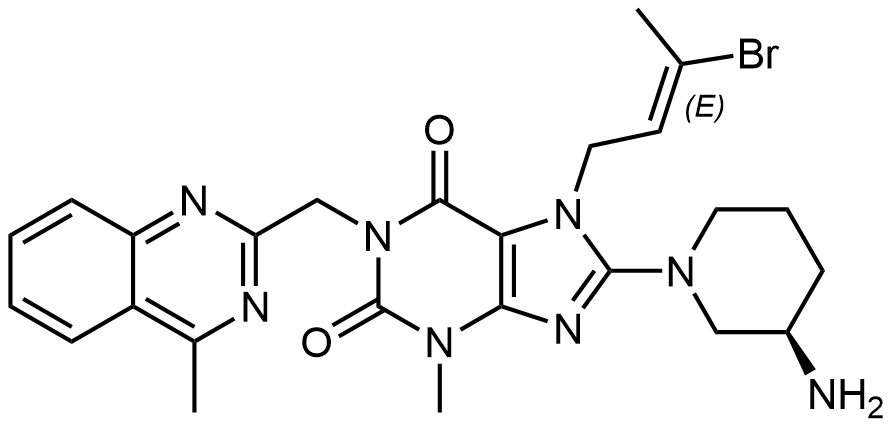 Synonyms: (R,E)-8-(3-aminopiperidin-1-yl)-7-(3-bromobut-2-en-1-yl)-3-methyl-1-((4-methylquinazolin-2-yl)methyl)-3,7-dihydro-1H-purine-2,6-dione