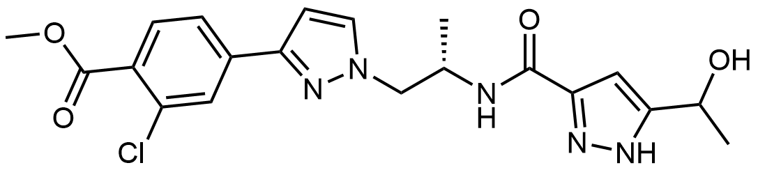 Synonyms: methyl 2-chloro-4-(1-((2S)-2-(5-(1-hydroxyethyl)-1H-pyrazole-3-carboxamido)propyl)-1H-pyrazol-3-yl)benzoate