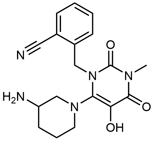 Synonyms: 2-((6-(3-aminopiperidin-1-yl)-5-hydroxy-3-methyl-2,4-dioxo-3,4-dihydropyrimidin-1(2H)-yl)methyl)benzonitrile