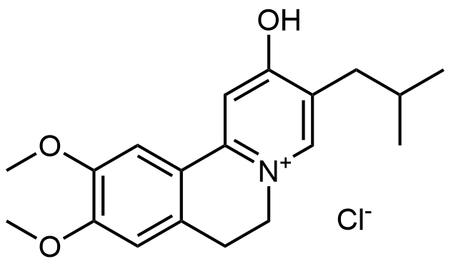 Synonyms: 2-hydroxy-3-isobutyl-9,10-dimethoxy-6,7-dihydropyrido[2,1-a]isoquinolin-5-ium chloride