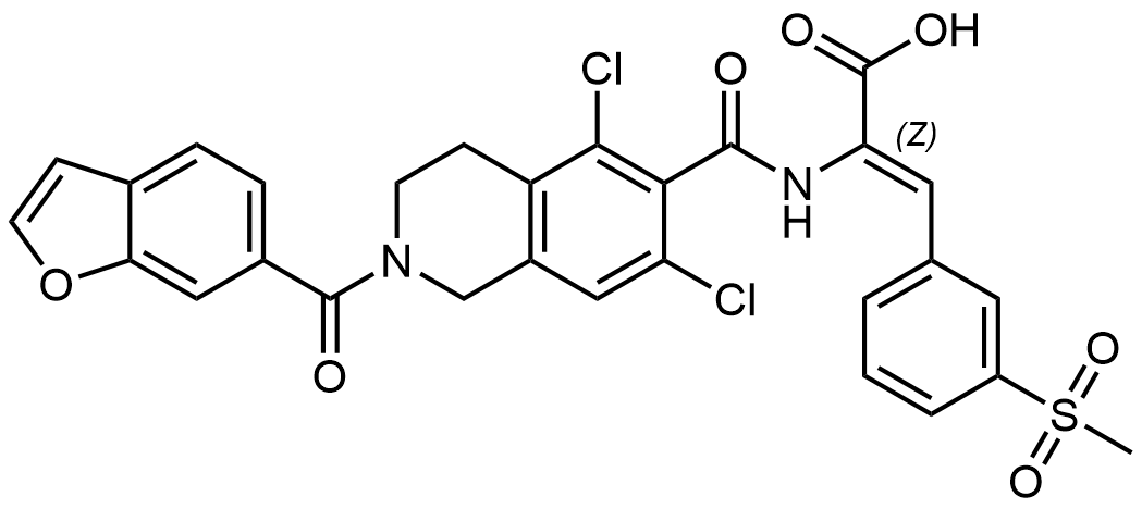 Synonyms: (Z)-2-(2-(benzofuran-6-carbonyl)-5,7-dichloro-1,2,3,4-tetrahydroisoquinoline-6-carboxamido)-3-(3-(methylsulfonyl)phenyl)acrylic acid