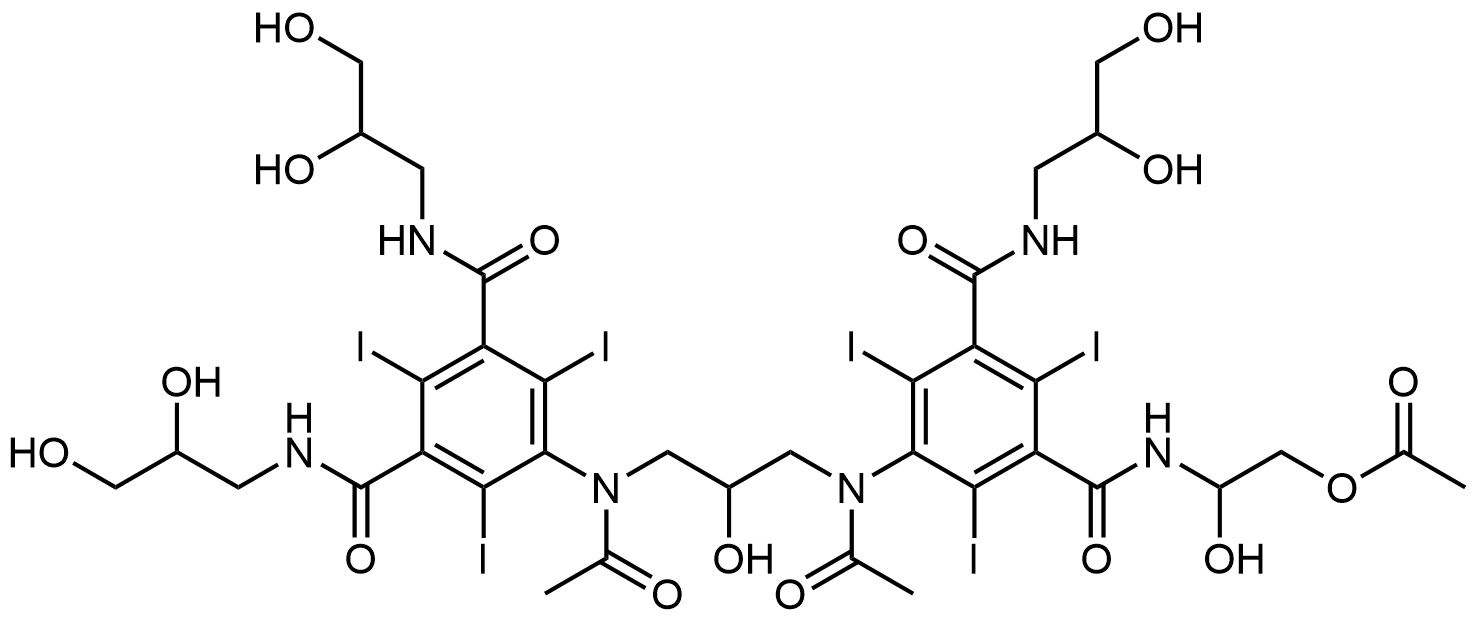 Synonyms: 2-(3-(N-(3-(N-(3,5-bis((2,3-dihydroxypropyl)carbamoyl)-2,4,6-triiodophenyl)acetamido)-2-hydroxypropyl)acetamido)-5-((2,3-dihydroxypropyl)carbamoyl)-2,4,6-triiodobenzamido)-2-hydroxyethyl acetate